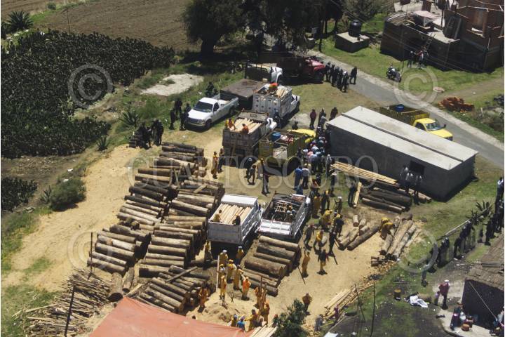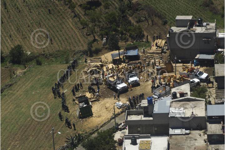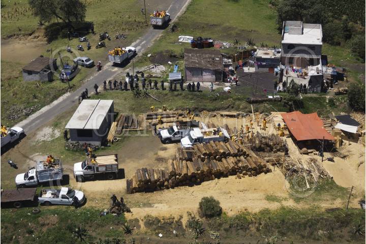 MÉXICO, D.F., 05JUNIO2013.- Vista aérea del operativo que personal de la SSP-DF realizó simultáneamente en 18 aserraderos clandestinos que operaban en San Salvador Cuauhtenco, San Pablo Oztotepec y Santa Ana Tlacotenco en la delegación Milpa Alta. FOTO: SAÚL LÓPEZ / CUARTOSCURO.COM
