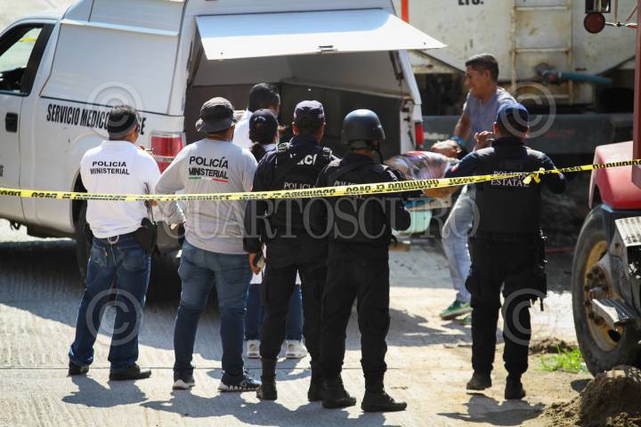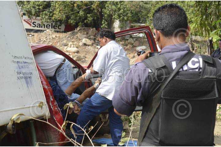 ACAPULCO, GUERRERO, 10ABRIL2013.- Sujetos desconocidos abrieron fuego en contra de Fabián Pantaleón Venancio de 35 años de edad, cuando manejaba una camioneta repartidora de pescados y mariscos, la unidad ya sin control cayó a un barranco localizado a a la orilla de la carretera Federal Acapulco-México, en la entrada del poblado de San Isidro. El occiso aparentemente recibió dos balazos. Los peritos en materia de criminalística realizaron los rastreos periciales, hallándose a la orilla de la carretera dos casquillos percutidos de calibre 38 súper, mismos que recibió Fabián en el cráneo. FOTO: BERNANDINO HERNÁNDEZ /CUARTOSCURO.COM