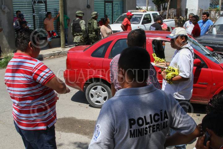 ACAPULCO, GUERRERO, 04MARZO2016.- Dos hombres fueron ejecutados en el interior de un vehículo sobre la calle Floresta de la colonia Potrero de la Mora. Los occisos viajaban en un vehículo tipo Corsa color rojo, con placas de circulación HBU-22-43 de Guerrero, el conductor fue identificado como Marco Antonio Robles de 45 años, líder transportista; el otro se encuentra en calidad de desconocido. En el lugar se localizaron 7 casquillos percutidos calibre 9 milímetros. Elementos del Ejército Mexicano arribaron junto con agentes y peritos del Ministerio Público, quienes fueron los encargados de realizar las primeras diligencias de ley y ordenaron el traslado de los cuerpos al Servicio Médico Forense (Semefo). FOTO: BERNANDINO HERNÁNDEZ /CUARTSOCURO.COM