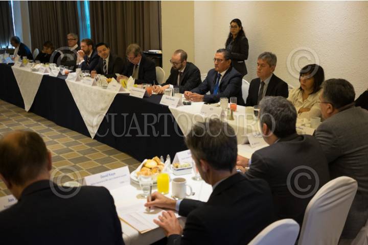 CIUDAD DE MÉXICO, 28NOVIEMBRE2017.- PERIODISTAS SE REUNEN CON RELATORES DE LA ONU Y LA OEA. Edison Lanza, relator especial sobre la libertad de expresión de la CIDH, David Kaye, relator especial de la ONU sobre la libertad de expresión y Jan Jarab, representante ONU-DH México, acompañados por Luis Raúl González Pérez, presidente Nacional de la Comisión de Derechos Humanos se reunieron esta mañana con periodistas y directores de medios para escuchar las sugerencias y propuestas de la violencia contra periodistas que daña la libertad de expresión y el alto índice de periodistas asesinados en nuestro país, con el fin de encontrar alternativas para mejorar las condiciones en el ejercicio del oficio. En la imagen, Juan Francisco Ealy Jr., Director General del Universal, Daniel Moreno, Director de Animal Político, Antonio Martínez de Horizontal y David Aponte, Director Editorial del Universal. PEDRO VALTIERRA /CUARTOSCURO.COM