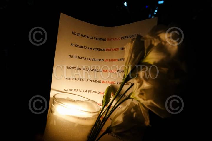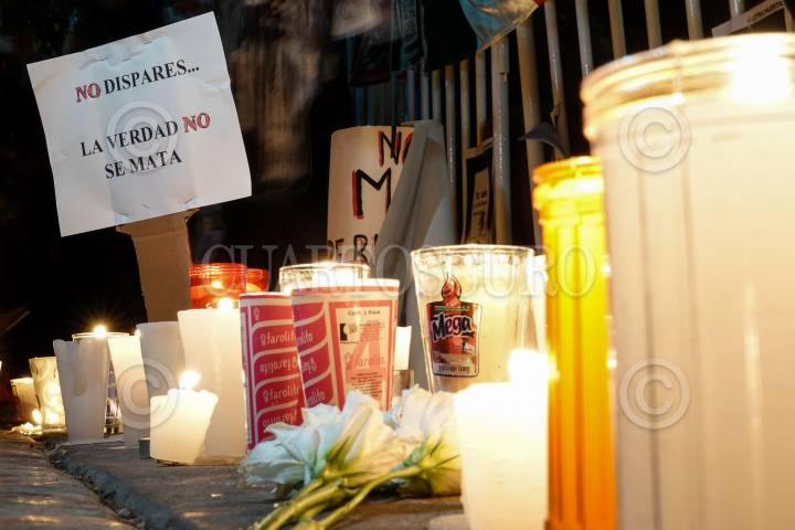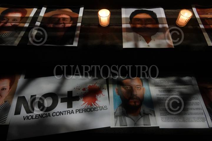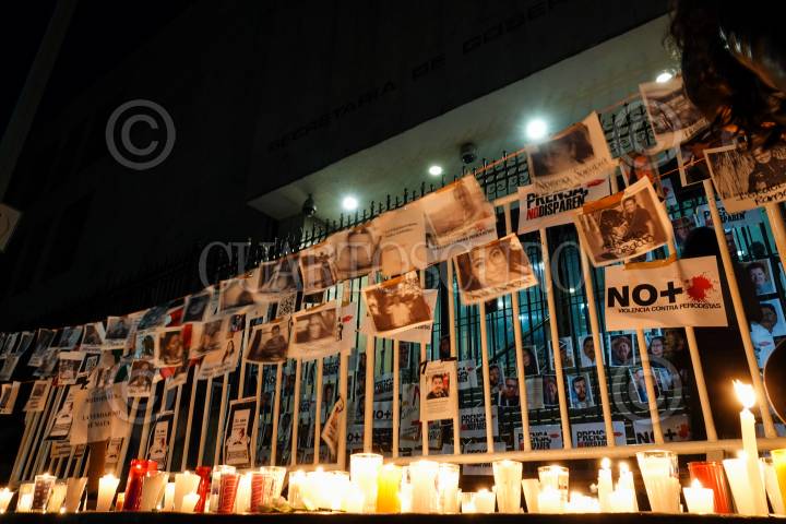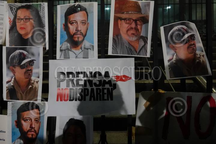 Protesta de periodistas frente a la Secretaría de Gobernación por los asesinatos de los periodistas Margarito Martínez, Lourdes Maldonado y José Luis Gamboa