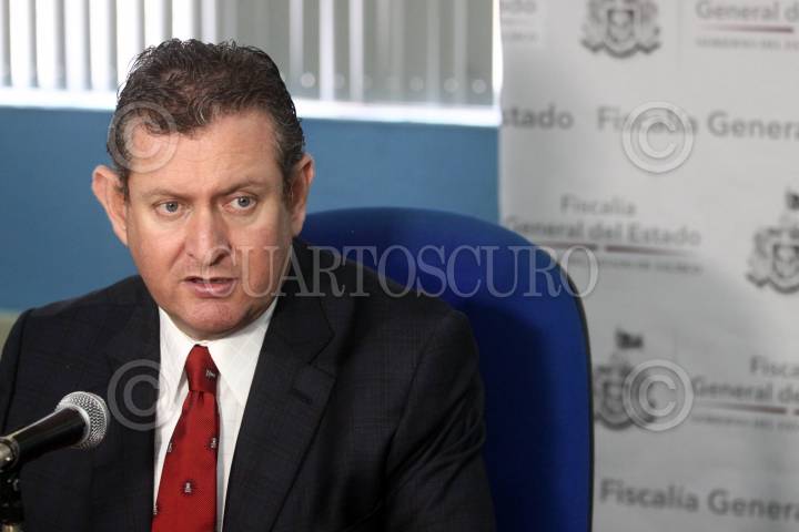 GUADALAJARA, JALISCO, 14MAYO2013.- Después de dos meses del asesinato del secretario de Turismo de Jalisco, El Fiscal General del Estado, Luis Carlos Nájera Gutiérrez de Velasco, confirmó la detención de cuatro personas presuntamente involucradas en la muerte de Jesús Gallegos Álvarez. Los cuatro detenidos confesaron su participación en el asesinato de Gallegos en marzo pasado y narraron cómo ocurrió a través de un video que mostró la fiscalía durante una conferencia de prensa encabezada por el titular, Luis Carlos Nájera. En el video, afirman que pertenecen al cártel Jalisco Nueva Generación. Gallegos Álvarez, empresario del ramo de la construcción y turismo, fue asesinado nueve días después de asumir su cargo como parte del equipo del equipo de trabajo del gobernador priista Aristóteles Sandoval (2013-2018). Los detenidos son Jonathan García García (Jonh Perro), Carlos Muñoz Morales (El Tilico), Juan Manuel González Martínez (El Piojo) y Julio Andrés Vázquez Estrada (El Padrino). FOTO: CORTESÍA /CUARTOSCURO.COM