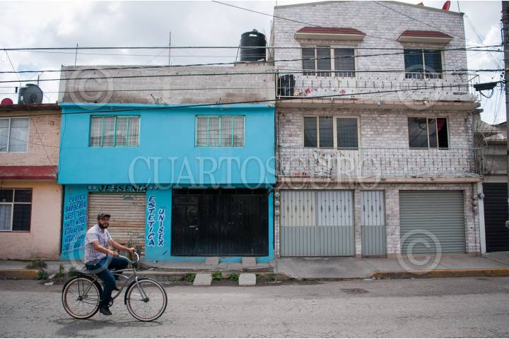 ECATEPEC, ESTADO DE MÉXICO, 14OCTUBRE2018.- Cruces y pancartas para exigir justicia y castigo a los responsbles por varios asesinatos de mujeres en Ecatepec han sido colocadas en calles de la colonia Jardines de Morelos luego de la detención de una pareja que se declaró culpable por el asesinato de más de 10 mujeres en su domicilio ubicado en la calle Playa Tijuana. Según el Observatorio Ciudadano Nacional del Feminicidio, en el Estado de México se han cometido más de 1400 feminicidios entre 2014 y 2017, siendo Ecatepec el municipio con más delitos. En la imagen, la fachada azul del domiclio de la pareja que fue detenida el pasado 3 de octubre. FOTO: DIEGO SIMÓN SÁNCHEZ /CUARTOSCURO.COM