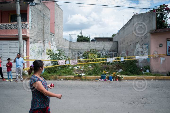 ECATEPEC, ESTADO DE MÉXICO, 14OCTUBRE2018.- Cruces y pancartas para exigir justicia y castigo a los responsbles por varios asesinatos de mujeres en Ecatepec han sido colocadas en calles de la colonia Jardines de Morelos luego de la detención de una pareja que se declaró culpable por el asesinato de más de 10 mujeres en su domicilio ubicado en la calle Playa Tijuana. Según el Observatorio Ciudadano Nacional del Feminicidio, en el Estado de México se han cometido más de 1400 feminicidios entre 2014 y 2017, siendo Ecatepec el municipio con más delitos. En la imagen, el lote baldío donde fueron encontrados restos de víctimas que presuntamente fueron tirados por la pareja detenida el pasado 3 de octubre. FOTO: DIEGO SIMÓN SÁNCHEZ /CUARTOSCURO.COM