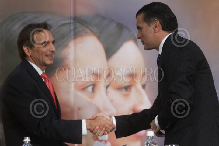 MÉXICO, D.F., 08JULIO2010.- Carlos Pascual, embajador norteamericano, Alonso Lujambio, Secretario de Educación Pública y Fernando González, subsecretario de Educación Básica, entregaron becas a maestros y asesores técnicos pedagógicos de educación indígena y para jóvenes de comunidades indígenas y rurales, en el salón Hispanoamericanos del edificio de la SEP. FOTO: MOISÉS PABLO/CUARTOSCURO.COM