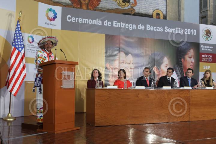 MÉXICO, D.F., 08JULIO2010.- Beneficiarios del programa de becas para maestros y asesores técnicos pedagógicos de educación indígena y para jóvenes de comunidades indígenas y rurales de la SEP durante el acto oficial en el salón Hispanoamericanos. FOTO: MOISÉS PABLO/CUARTOSCURO.COM