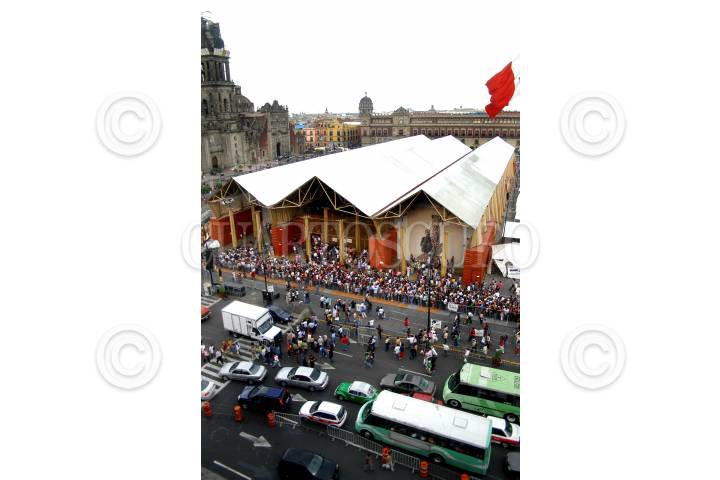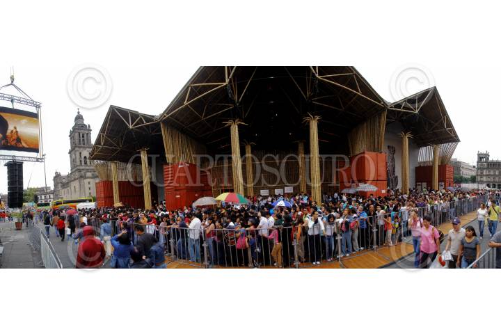 MÉXICO, D.F., 19ENERO2008.- Decenas de personas hacen largas filas en la plancha del Zócalo para ingresaar al Museo Nomadico y apreciar la exposición Ashes and Snow del artista Gregory Colbert. FOTO: RICARDO CASTELAN/CUARTOSCURO.COM