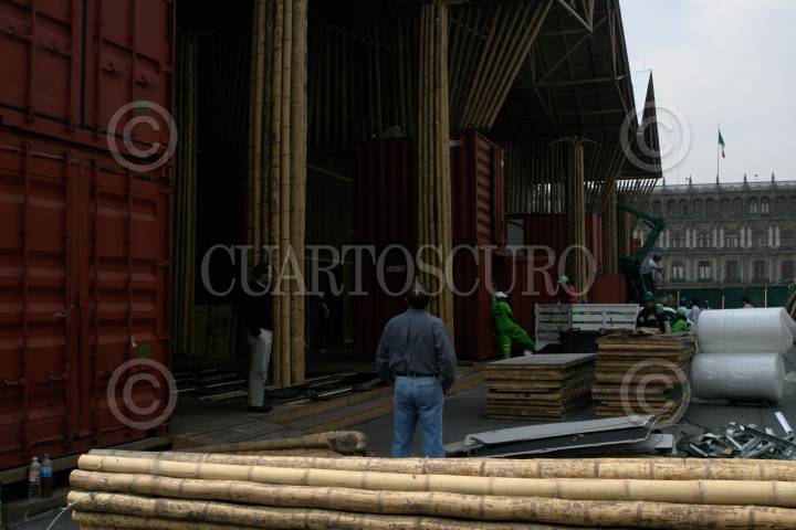 MÉXICO, D.F., 28ABRIL2008.- Trabajadores comenzaron a desmontar el museo nomada y la exposición Ashes and Snow que duro mas de tres meses en la plancha del zocalo capitalino. FOTO: SAÚL LÓPEZ/CUARTOSCURO.COM