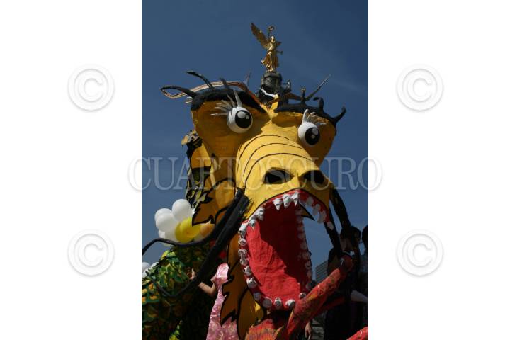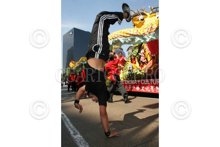 MÉXICO, D.F., 16FEBRERO2008.-Se realizó el primer desfile conmemorativo al nuevo año chino el cual corresponde a el año de la rata, las caravanas que estaban integradas por danzantes, acrobatas, dragones chinos e integrantes de la comunidad de aquelpaís asiatico, salieron del Angel de la Independencia. FOTOS:RICARDO CASTELAN/CUARTOSCURO.COM