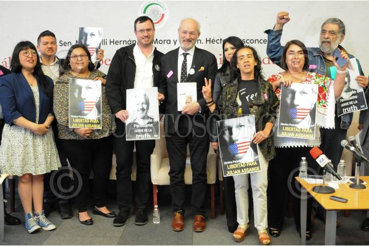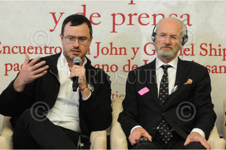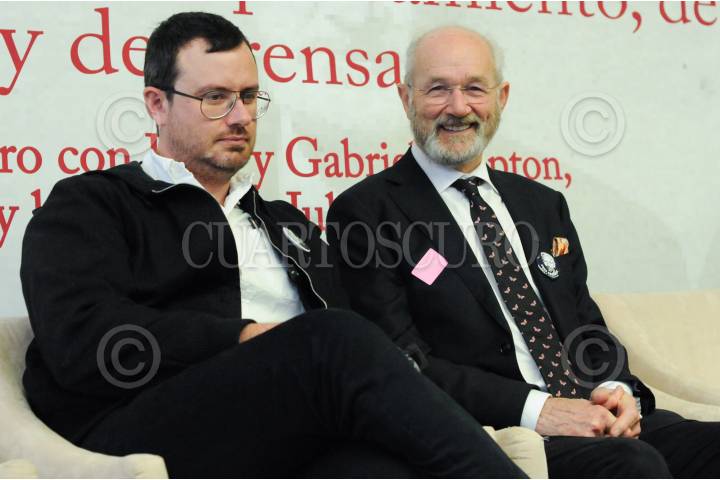 John y Gabriel Shipton, familia de Julián Assange, durante el foro en el Senado.