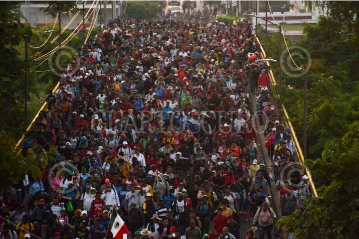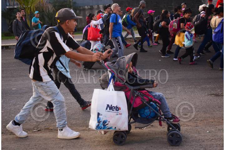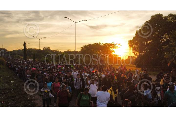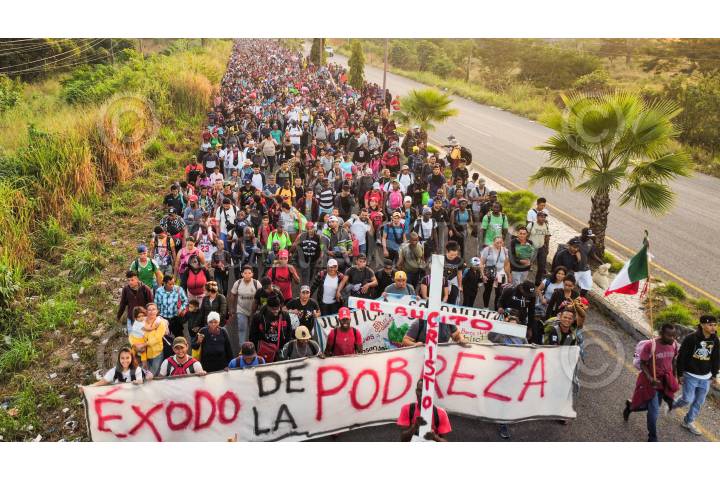 TAPACHULA, CHIAPAS, 24DICIEMBRE2023.- Alrededor de ocho mil personas de diferentes nacionalidades rezaron antes de avanzar en una nueva caravana migrante con la ilusión de llegar a los Estados Unido. Al frente unos cargaban una cruz de Madera, con una manta que decía: “el éxodo de la pobreza". FOTO: DAMIÁN SÁNCHEZ/CUARTOSCURO.COM