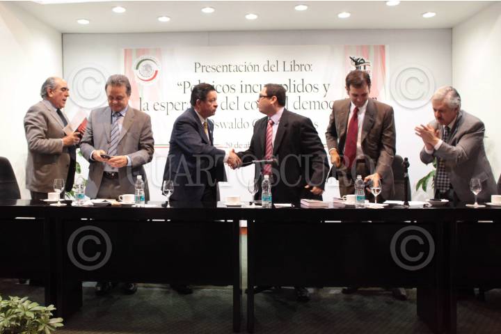 MÉXICO, D.F., 29ABRIL2010.- Los senadores Pablo Gómez, Carlos Navarrete, Pedro Joaquín Coldwell y Ricardo García Cervantes, asistieron a la Presentación del Libro: Políticos Incumplidos y la Esperanza del Control Democrático. FOTO: CUARTOSCURO.COM