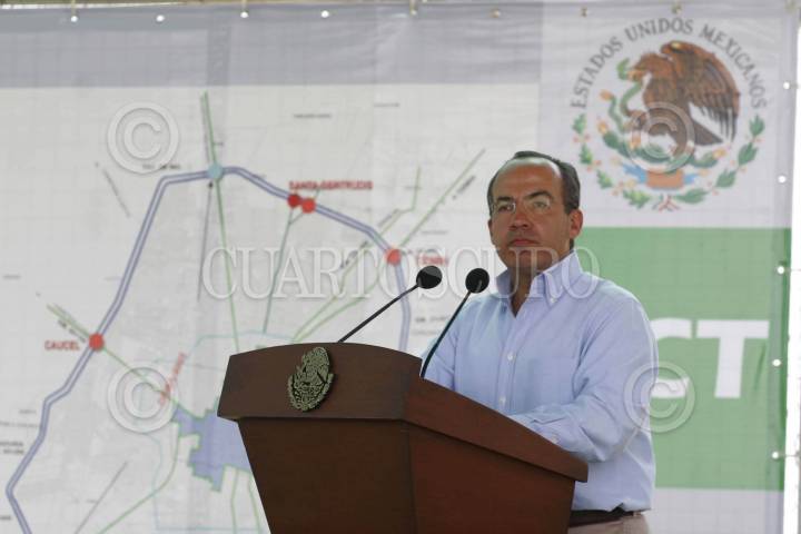 MERIDA, YUCATAN09ABRIL2007.-El presidente Felipe Calderon Hinojosa, durante su estancia en Mérida, asitió a la modernizacion del periferico de dicha ciudad, en el kilometro 29 en Santa Gertrudis. FOTO ALFREDO GUERRERO/CUARTOSCURO.COM