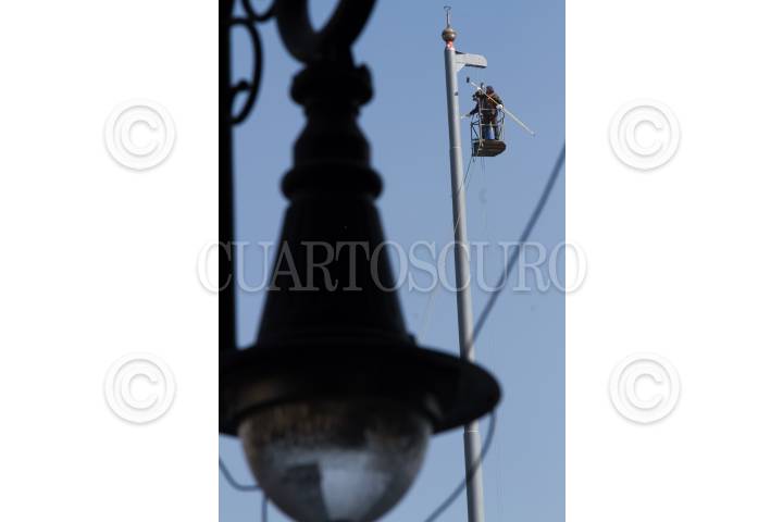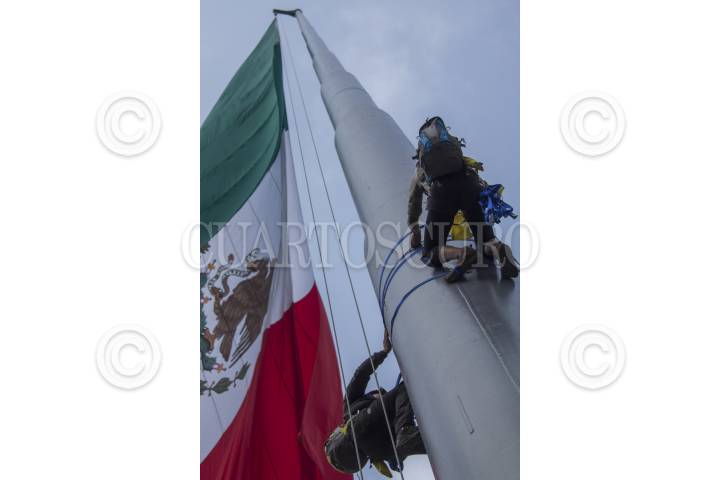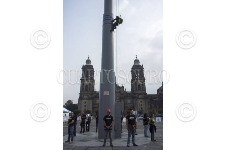CIUDAD DE MÉXICO, 25ENERO2017.- Soldados pinta la asta bandera en el Zócalo capitalino. FOTO: MOISÉS PABLO /CUARTOSCURO.COM