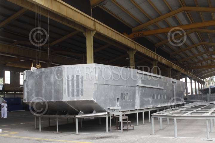 TAMPICO, TAMAULIPAS, 01MARZO2014.- El Astillero de Marina No. 1 es el principal Centro de Reparaciones Navales del Golfo de México dependiente de la Secretaría de Marina-Armada de México, ocupa el primer lugar de importancia en el litoral del Golfo de México y Mar Caribe, este se encuentra en los margenes del río Pánuco. Desde 1955 se han construido 91 cascos de diferenres tipos, para cubrir la necesidades de Secretaría de Marina, del Sector Privado y otras dependencias. Por la mañana en este lugar se llevó a cabo el protocolo de botadura de la Patrulla Costera Armada República Mexicana Palenque PC-333. FOTO: MOISÉS PABLO /CUARTOSCURO.COM