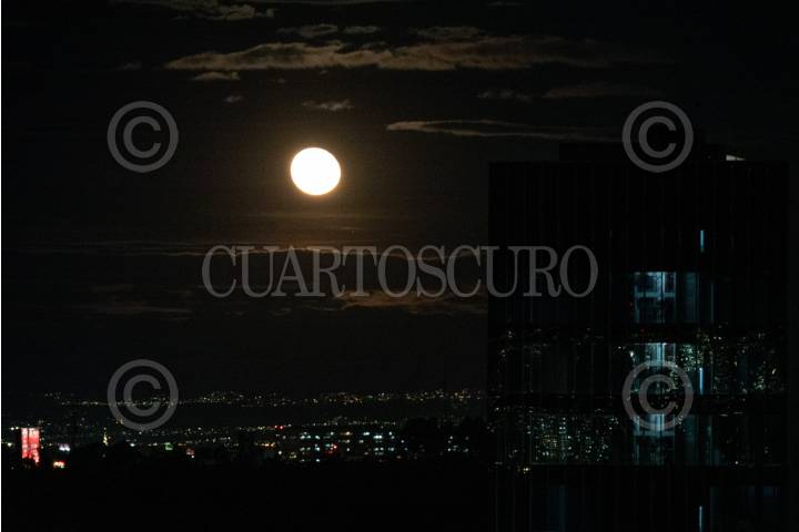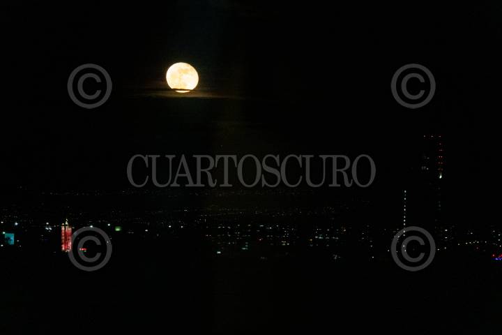 Aspectos de la luna llena desde el poniente de la ciudad.