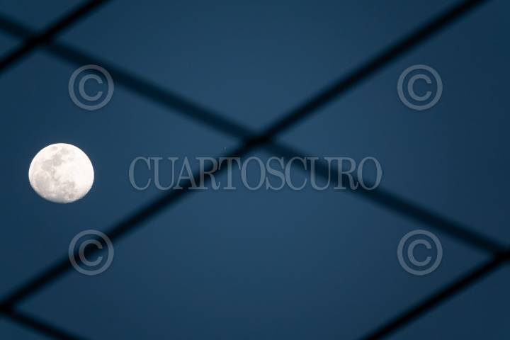 La luna se percibe enrejada en calles de la colonia Condesa y será próximo 17 de enero cuando alcance su fase de luna llena.