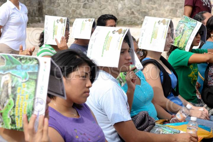 CHETUMAL, QUINTANA ROO, 02ABRIL2011.- Varios estudiantes universitarios y preparatoria que acudieron de las ocho y hasta las nueve y media de la manana con tuvieron que soportar los intesos rayos del sol en espera de que llegara Felix Arturo Gonzalez Canto para poner la primera piedra de la edificacion del Planetario Observatorio con Cosmovision Maya "Yook?Ol - Kaab". FOTO: MARCO POLO GUZMAN HERNANDEZ/CUARTOSCURO.COM
