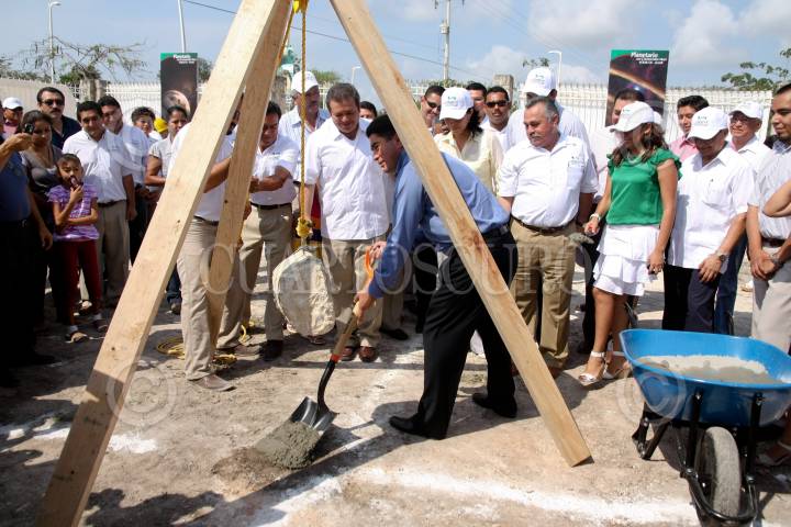 CHETUMAL, QUINTANA ROO, 02ABRIL2011.- Felix Arturo Gonzalez Canto, gobernador del estado acudio a tempranas horas a poner la primera piedra de la edificacion del Planetario Observatorio con Cosmovision Maya "Yook?Ol - Kaab". A pocos horas que termine su mandato constitucional, el mandatario acudio en compania de Andres Florentino Ruiz Morcillo, edil de Othon Pompeyo Blanco y Jose Antonio Hoy Manzanilla, director del COQCYT; ahi recibio una medalla al merito por su aportacion a la ciencia e investigacion. FOTO: MARCO POLO GUZMAN HERNANDEZ/CUARTOSCURO.COM