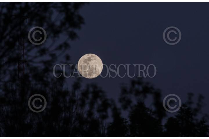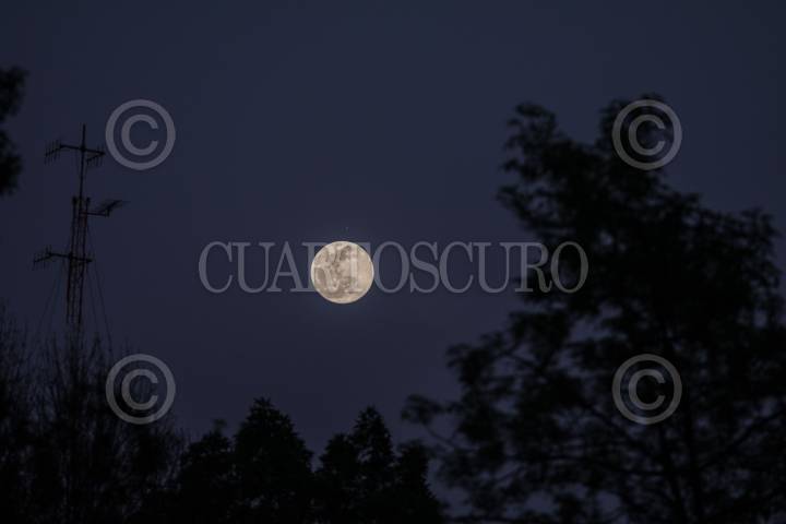Aspecto de la primera Luna llena del año, vista previo al amanecer desde el Centro Histórico de a Ciudad
