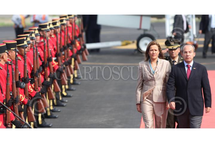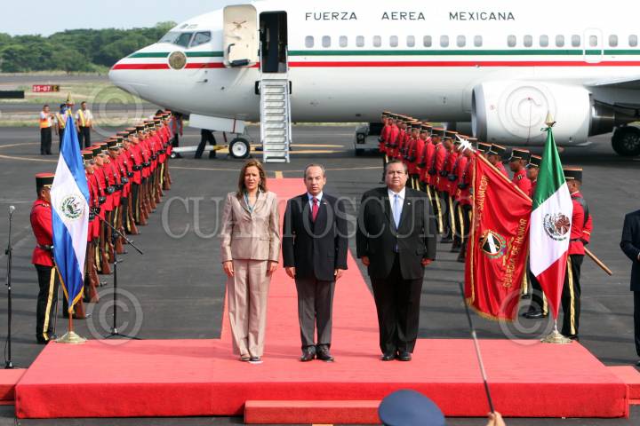 SAN SALVADOR 31MAYO2009.- Felipe Calderon Hinojosa Presidente de México acompañado por su esposa Margarita Zavala asu arribo al aeropuerto internacional de San Salvador. FOTO: FRANCISCO SANTOS/CUARTOSCURO.COM
