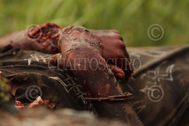 VILLAHERMOSA, TABASCO, 09ENERO2009.- El cuerpo sin vida de una persona del sexo masculino de identidad desconocida hasta el momento, fue encontrado envuelto en bolsas con ataduras en el cuerpo, el cadáver fué encontrado en el terreno baldío da frente a la finca que era propiedad del también ejecutado a mediados del 2006, Ponciano Vázquez Lagunas. FOTO: MARCO POLO GUZMÁN HERNÁANDEZ/CUARTOSCURO.COM
