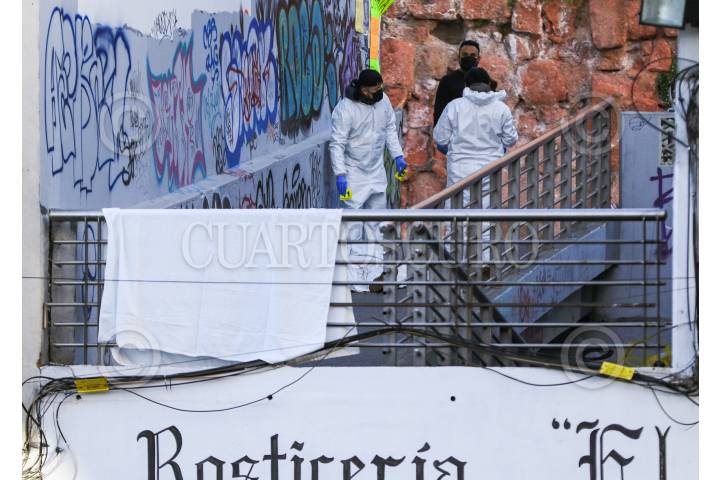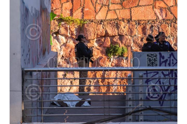 ZACATECAS, ZACATECAS, 04FEBRERO2025.- Un hombre perdió la vida luego de un ataque armado cuando caminaba en pleno centro de la capital zacatecana. Alrededor de las 17:30 horas se reportaron al sistema 911 detonaciones de armada de fuego, por lo que elementos policiacos se dieron cita a la zona de la Plaza Bicentenario. Al llegar al lugar un hombre corría con una arma de alto poder, mientras otro yacía con heridas de bala sobre el puente peatonal que cruza el bulevar metropolitano. Policías municipales intentaron dar alcance al presunto responsable pero logró darse a la fuga después de correr por los callejones de la colonia Pánfilo Natera. Al lugar llegaron paramédicos de Policía Estatal pero ya no contaba con signos vitales la víctima del ataque. Gran movilización de seguridad se presentó en toda la zona ya que es la de mayor tránsito peatonal y de flujo de transporte público. FOTO: GENARO NATERA /CUARTOSCURO.COM