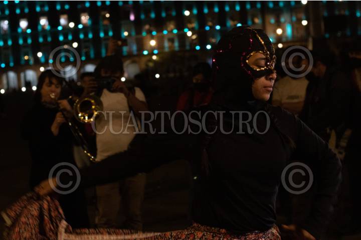 Carmen Sánchez, fundadora de la asociación con su nombre y sobreviviente de intento de feminicidio con ataque de ácido junto con otras mujeres también víctimas proyectaron sus fotos con nombres en la fachada de Palacio Nacional, esto con motivo del octavo año desde el ataque de Carmen.
