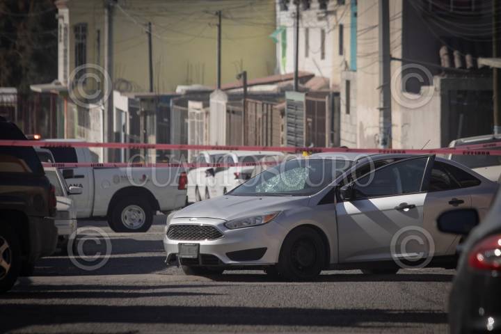 TIJUANA, BAJA CALIFORNIA 19OCTUBRE2023.-Vehículo en el que iba a bordo la oficial cuando fue atacada. Una mujer agente de la Secretaría de Seguridad Estatal Ciudadana, fue atacada a balazos a las afueras de su vivienda, cuando se encontraba a bordo de su vehículo. Paramédicos de la Cruz Roja, arribaron al lugar para brindar atención médica a la mujer, quien ya no contaba con signos vitales. De acuerdo a información extraoficial, la agente iba acompañada de su hija, debido a que la iba a llevar a la escuela, cuando fue el ataque, sin embargo la menor resultó ilesa. La Fiscalía General del Estado y Servicios Periciales, realizaron el procesamiento de la escena encontrando varios impactos de bala en el vehículo Ford, Focus en el que iba abordó. En una cámara de vigilancia, las autoridades obtuvieron las imágenes del vehículo tipo Buik Regal, mismo que fue localizado a unas cuadras del lugar presuntamente con armas al interior. FOTO: OMAR MARTÍNEZ / CUARTOSCURO.COM