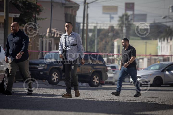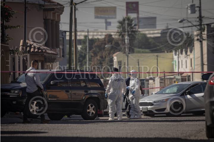 TIJUANA, BAJA CALIFORNIA 19OCTUBRE2023.-Servicios Periciales realizando la investigación correspondiente. Una mujer agente de la Secretaría de Seguridad Estatal Ciudadana, fue atacada a balazos a las afueras de su vivienda, cuando se encontraba a bordo de su vehículo. Paramédicos de la Cruz Roja, arribaron al lugar para brindar atención médica a la mujer, quien ya no contaba con signos vitales. De acuerdo a información extraoficial, la agente iba acompañada de su hija, debido a que la iba a llevar a la escuela, cuando fue el ataque, sin embargo la menor resultó ilesa. La Fiscalía General del Estado y Servicios Periciales, realizaron el procesamiento de la escena encontrando varios impactos de bala en el vehículo Ford, Focus en el que iba abordó. En una cámara de vigilancia, las autoridades obtuvieron las imágenes del vehículo tipo Buik Regal, mismo que fue localizado a unas cuadras del lugar presuntamente con armas al interior. FOTO: OMAR MARTÍNEZ / CUARTOSCURO.COM