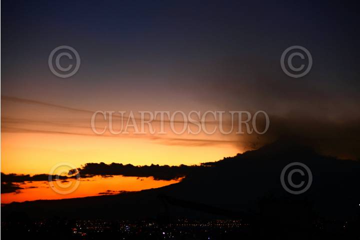 PUEBLA, PUEBLA, 06ENERO2016.- Vista del volcán Popocatépetl en el atardecer desde el parque Victoria. FOTO: ISABEL MATEOS /CUARTOSCURO.COM