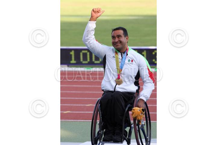 ZAPOPAN, JALISCO, 17NOVIEMBRE2011.- El mexicano Salvador Hernández Mondragon, logró conseguir la medalla de oro en la prueba de 400 metros varonil T52, en el estadio de atletismo, dentro del marco de los Juegos Parapanamericanos Guadalajara 2011. FOTO: FERNANDO CARRANZA/CUARTOSCURO.COM