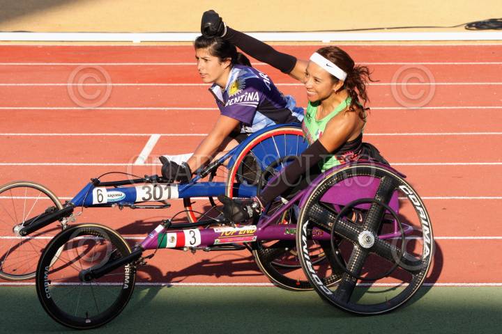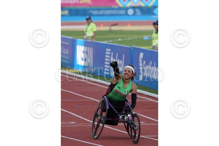 ZAPOPAN, JALISCO, 17NOVIEMBRE2011.- La mexicana Yazmith Bataz, logro conseguir la medalla de oro en la prueba de los 100 metros femenil-T54, en el estadio de atletismo, dentro del marco de los Juegos Parapanamericanos Guadalajara 2011. FOTO: FERNANDO CARRANZA/CUARTOSCURO.COM