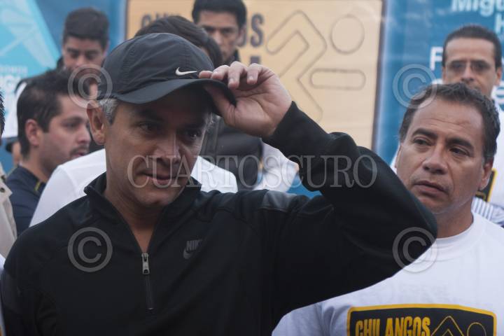 MÉXICO, D.F., 20OCTUBRE2012.- Miguel Angel Mancera, jefe de gobierno electo del D.F. y Victor Hugo Romo, delegado de Miguel Hidalgo, encabezaron la carrera Chilangos Run, en el Parque Plan Sexenal ubicado en esa demarcación. Ambos políticos participaron en una carrera de 10 vueltas a la pista recien inagurada. Como invitada especial estuvo la cantante Chyntia de la Academia. FOTO: FRANCISCO RODRÍGUEZ /CUARTOSCURO.COM