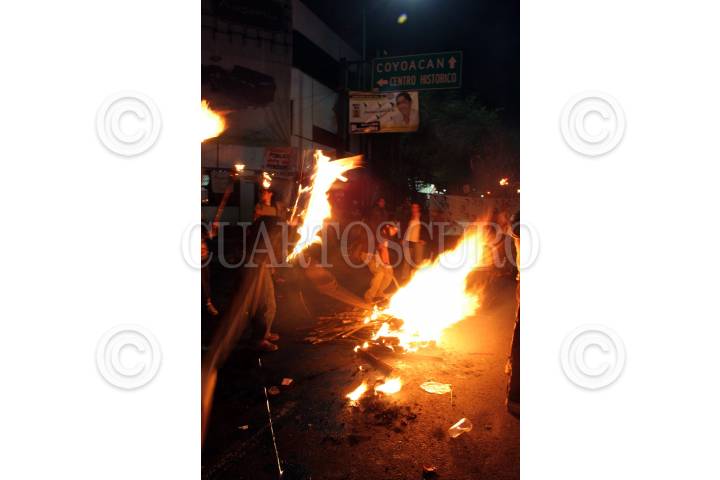 MÉXICO, D.F., 04JUNIO2009.- Un grupo de personas pertenecientes al pueblo de San Salvador Atenco, acompañados de estudiantes de diferentes universidades reclamaron la liberación de sus presos políticos, estos prendieron antorchas frente a la Secretaría de Gobernación. FOTOS: EDGAR ROMERO CHACÓN/CUARTOSCURO.COM