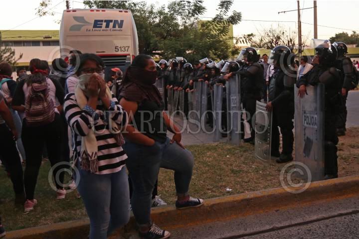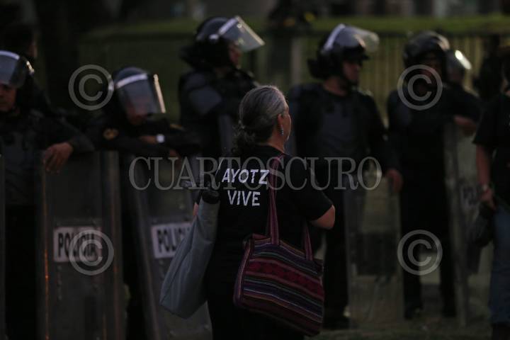 Tres estudiantes de la Normal de Atequiza participan en la manifestación por los 43 normalistas desaparecidos en Ayotzinapa a seis años.