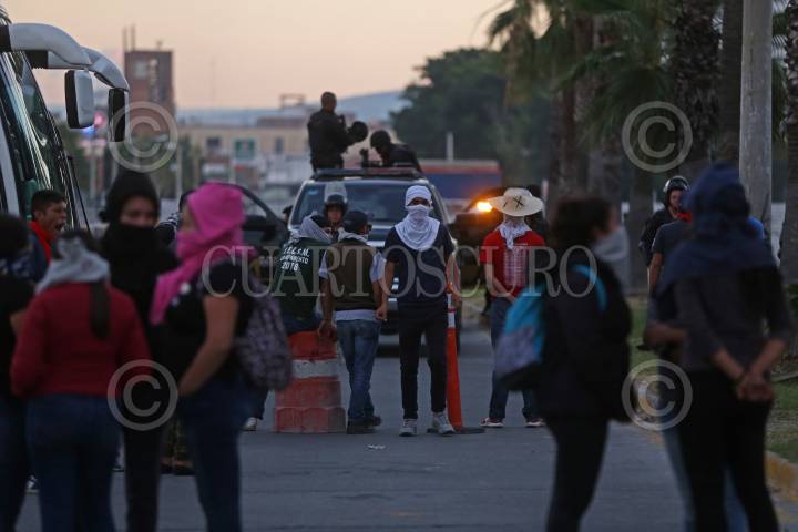 ZAPOTLANEJO, JALISCO, 19NOVIEMBRE2014.- Estudiantes de la Normal de Atequiza tomaron la caseta de cobro La Joya de la carretera a Zapotlanejo, lugar en donde permanecieron algunas horas dando paso a los automovilistas así como a transportistas por solo una aportación voluntaria como peaje, también saquearon con consentimiento a un par de transportistas de algunas marcas comerciales, esto en apoyo y solidaridad de los Normalistas desaparecidos de Ayotzinapa Guerrero. FOTO: FERNANDO CARRANZA GARCIA / CUARTOSCURO.COM