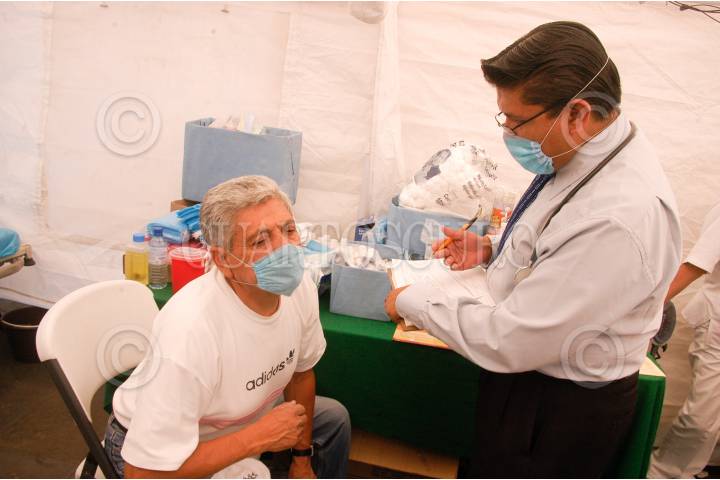 MÉXICO, D.F., 30ABRIL2009.- Una mujer es atendida por medicos dentro de un modulo de salud en donde se atiende a personas con síntomas del virus de la influencia humana AH1N1. FOTO: RODOLFO ANGULO/CUARTOSCURO.COM