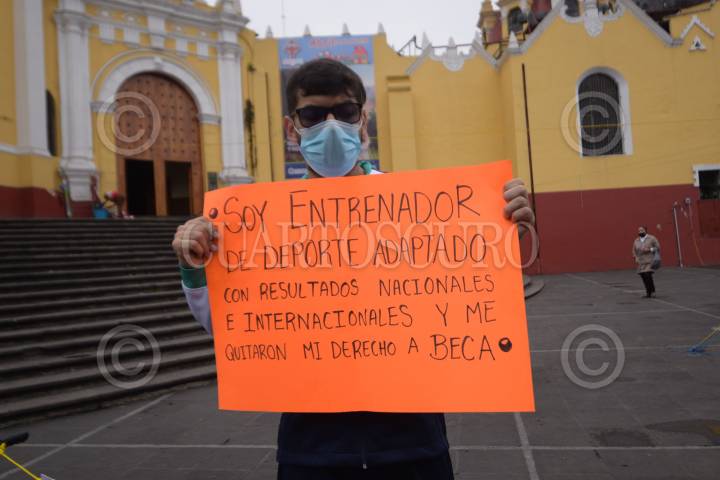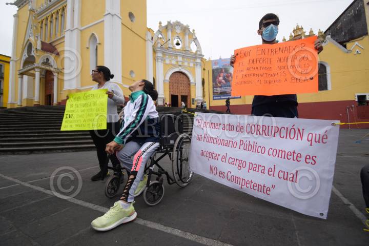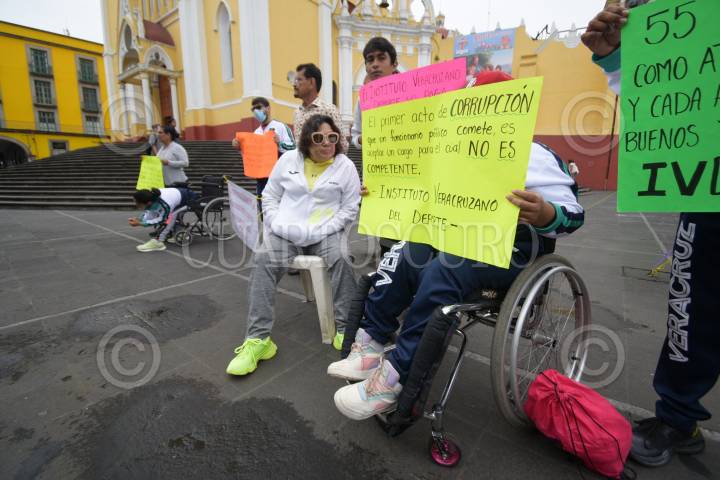 Atletas y un entrenador de deporte adaptado se manifestaron en Xalapa pues reclaman que el Instituto Veracruzano del Deporte (IVD) les quitó las becas.