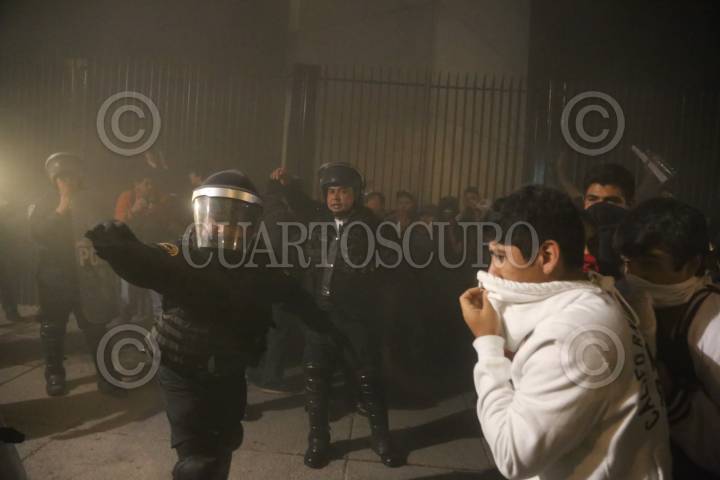 MÉXICO D.F. 01DICIEMBRE2014.- Integrantes de organizaciones sociales marcharon de zócalo de la Ciudad de México al Ángel de la Independencia en apoyo a los normalistas desaparecidos en Iguala Guerrero. En la imagen algunos manifestantes se enfrentaron com granaderos. FOTO SAÚL LOPEZ /CUARTOSCURO.COM
