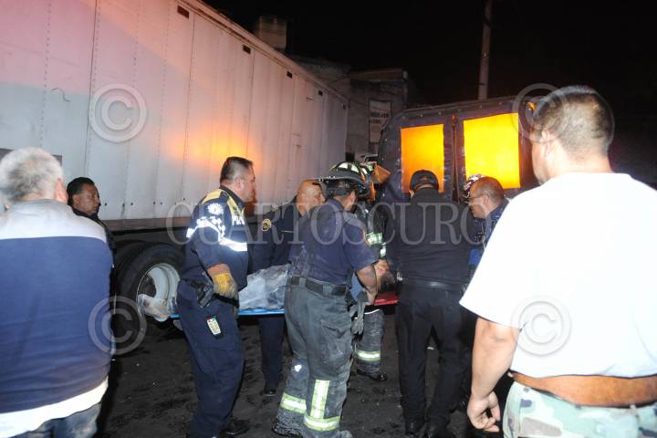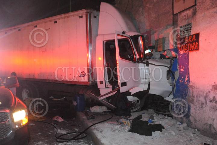 CIUDAD DE MÉXICO., 11MAYO2018.- Un camión tipo torton, se impactó contra una casa, luego de que este chocara con un auto Trans Am, en el cruce de la calle 11 y Cien Metros de la colonia Progreso Nacional. El conductor quedo atrapado por varios minutos al interior de la cabina que estaba entre los escombros de concreto. El conductor del auto compacto, se dio a la fuga abandonando el vehículo en el lugar. FOTO: LUIS CARBAYO /CUARTOSCURO.COM