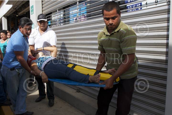 VILLAHERMOSA, TABASCO, 01JULIO2013.- Dos mujeres resultaron con graves heridas y tres más con lesiones cuando un trailer que estaba sin frenos y sin el chófer se proyecto contra las féminas cuando esperaban a las afueras de la tienda departamental Elektra sucursal Parrilla. En los hechos registrados sobre el kilómetro doce de la carretera interéstatal Villahermosa-Teapa, también fue comisionado un vehículo compacto; en las imagen personal de la Cruz Roja atienden a los lesionados y heridos. FOTO: MARCO POLO GUZMÁN HERNÁNDEZ /CUARTOSCURO.COM