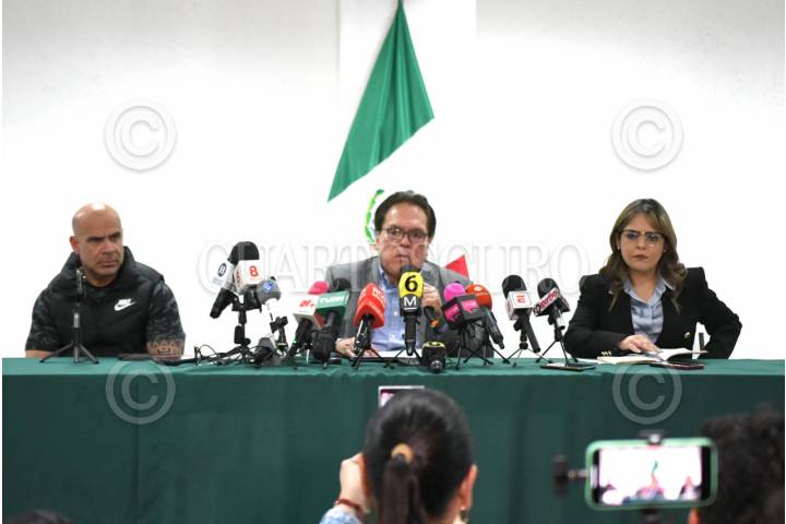 TORREÓN, COAHUILA, 22ENERO2024.- Gerardo Márquez Guevara, Fiscal General del Estado de Coahuila, señaló en conferencia de prensa que ya hay seis personas detenidas sospechosas de haber participado en el atropellamiento de al menos ocho personas con saldo de una mujer muerta, quien era aficionada al equipo de Monterrey. Los hechos sucedieron afuera del partido TSM luego de culminar el partido entre Santos y Monterrey. Informo que dos de los detenidos podrían ser quienes estaban al frente del auto que se abalanzó contra los aficionados. FOTO: CUARTOSCURO.COM