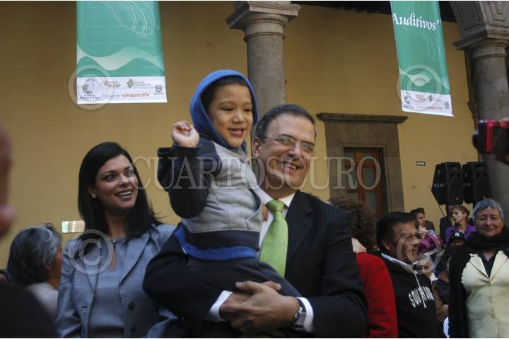 MÉXICO, D.F. 12ENERO2012.- Marcelo Ebrard Casaubon, Jefe del Gobierno del Distrito Federal, acompañado de su esposa Rosalinda Bueso, encabezo la entrega de aparatos auditivos en el Antiguo Palacio de Medicina. FOTO: GUILLERMO PEREA/CUARTOSCURO.COM