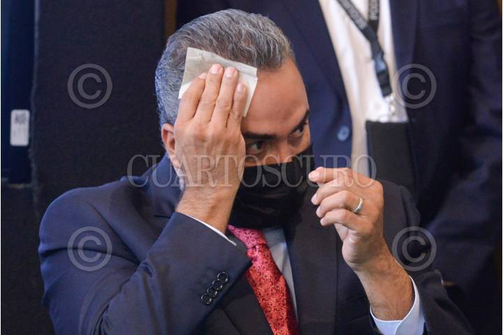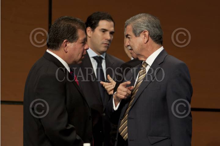 Juan Carlos Romero Hicks, presidente de la comisión de Transparencia y Anticorrupción, platica con Roberto Salcedo Aquino, secretario de la Función Pública.