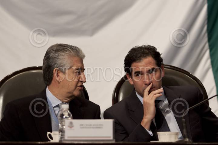 MÉXICO, D.F., 15FEBRERO2012.- Los diputados Cesar Augusto Santiago y Pablo Escudero durante la entrega del informe de la Cuenta Pública 2010, para revisar el desempeño y el gasto financiero que se ejerció durante ese año fiscal por parte de los tres órdenes de gobierno en la Cámara de Diputados. FOTO: RODOLFO ANGULO/CUARTOSCURO.COM