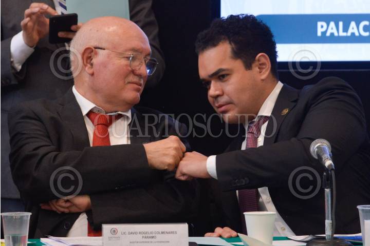 David Colmenares Páramo Auditor Superior de la Federación, y Pablo Guillermo Angulo, diputado del PRI, durante la reunión de instalación de la Comisión de Vigilancia de la Auditoria Superior de Federación.
