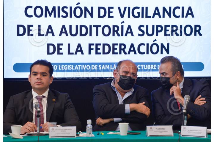 Los diputados del PRI: Pablo Guillermo Angulo, y Rubén Moreira, junto a David Colmenares Páramo Auditor Superior de la Federación y durante la reunión de instalación de la Comisión de Vigilancia de la Auditoria Superior de Federación.