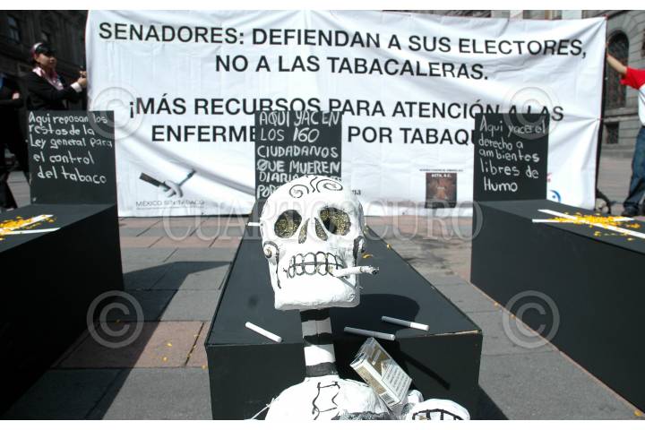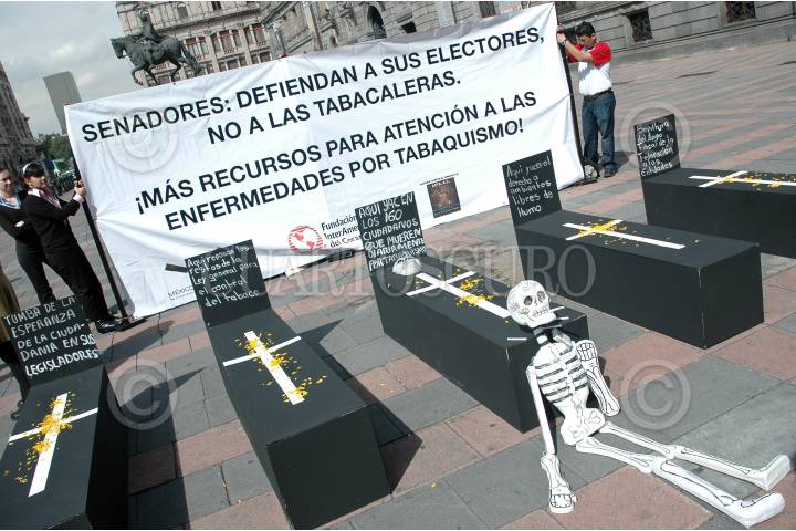 MÉXICO, D.F., 29OCTUBRE2009.- Integrantes de la Alianza Nacional para el Control del Tabaco protestaron a las afueras del Senado de la República en repudio a la decisión legislativa de aumentar únicamente 40 centavos a cada cajetilla de cigarros y así sepultar un aumento real del impuesto al tabaco. FOTO: RODOLFO ANGULO/CUARTOSCURO.COM