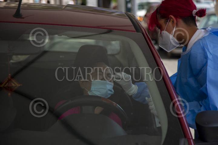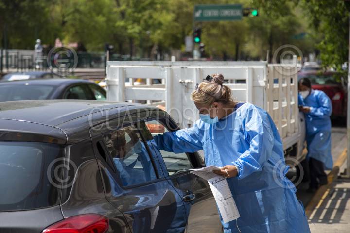Ante el incremento de casos por Covid-19, las filas de Drive-Thru para pruebas Covid aumentaron durante la última semana en el centro de Monterrey.